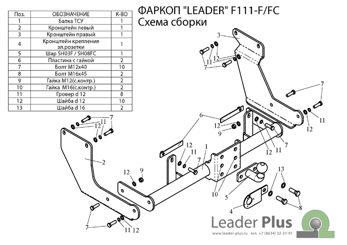 Конструкция фаркопа «Leader» представляет собой разборный вариант, что позволяет экономить место при складировании , транспортировке и облегчает процесс монтажа.