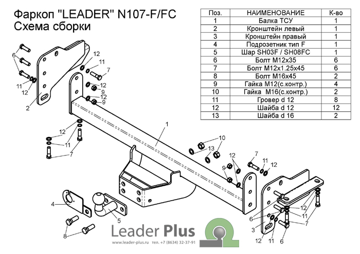 Конструкция фаркопа «Leader» представляет собой разборный вариант, что позволяет экономить место при складировании , транспортировке и облегчает процесс монтажа.